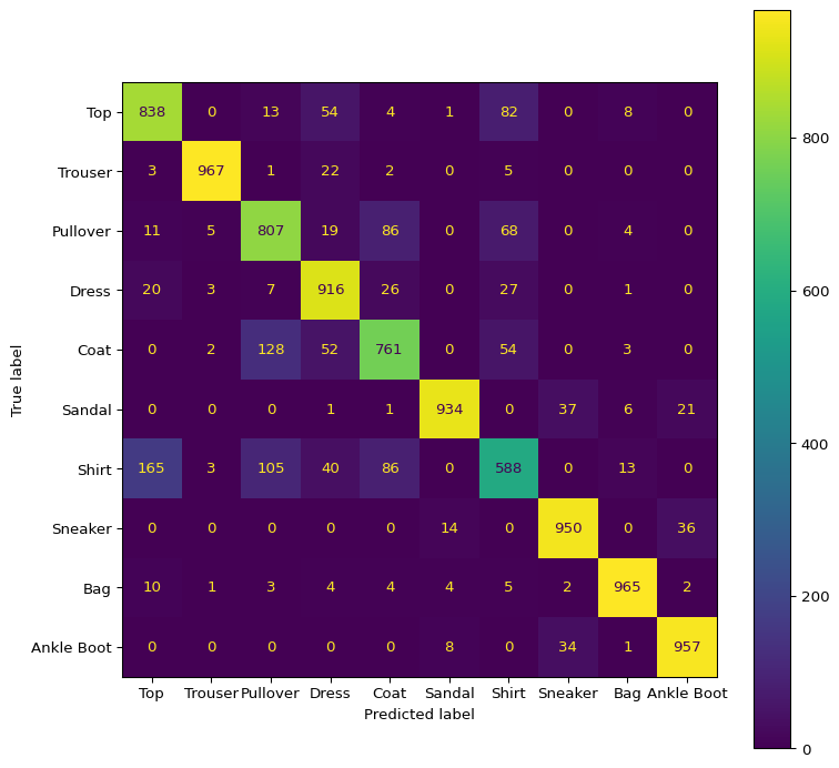 epochs = [i for i inrange(num_epochs)]fig = go.Figure()fig.add_trace(go.Scatter(x=epochs, y=train_losses, mode="lines+markers", name="Train"))fig.add_trace(go.Scatter(x=epochs, y=test_losses, mode="lines+markers", name="Test"))fig.update_xaxes(title_text="Epoch")fig.update_yaxes(title_text="Loss")fig.show()predictions = []truth = []with torch.no_grad():for x, y in test_loader: x = x.to(device) p = model(x) preds = torch.argmax(p, dim=1) predictions.extend(preds.flatten().cpu()) truth.extend(y)